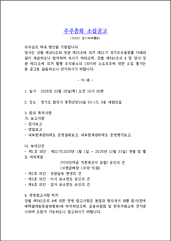 제 22기 주주총회 소집공고.hwp (14.5 KB)